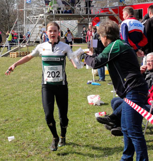 Alva varvar och får gel av Gitte. Tävlingen var belägen på Söderåsen och kan inte låta bli att citera vad min pappa sa när han fick höra att vi skulle springa ultralång där: "Skåne är platt men ni måste leta rätt på en ås att springa upp och ner på, skumt!" Allt detta med glimten i ögat såklart. Och lite dumma måste vi ju vara... H21 skulle ta sig an en 24,1 km lång bana och D21 en 17,5 km bana. För att inte glömma bort vår tappre junior Sven som skulle bemästra 16,7 km. Och backar fick vi erfara, men också mycket annat, det var mestadels fin lövskog men precis som alla kartor hade den sina mindre ljusa stunder, stenen i grönområdet var en av dem. Hur kommer det sig att alla torra grangrenar är i ansiktshöjd?! Det var en fin blandning av mer detaljfattiga hyfsat lättlöpta områden (för vissa kanske...) men också mer detaljerade kluriga områden där det gällde att hålla tungan rätt i mun, speciellt de sista kilometerna då hjärnan gärna vill ta rast. Några som lyckades alldeles utmärkt med detta var våra strålande seniorer; Fredrika, Alva och Rasmus. Tre stycken topp 10 placeringar i seniorklass går inte av för hackor! För att nämna lite om deras respektive resa till dessa strålande placeringar: Alva verkar ha gjort ett väldigt stabilt lopp där hon i början hade sällskap för att sedan visa vem som tränat bäst i vinter och sakta men säkert sprang ifrån och dryga ut avståndet bakåt. Den eviga ettan Tove var denna dag för stark och Alva hamnade på en strålande 2:a plats med tryggt avstånd till trean. Helt fantastiskt bra Alva! Fredrika gjorde även hon ett stabilt lopp då hon länge låg med bra för att sedan i slutskedet av loppet göra några missar. Men skam den som ger sig och Fredrika visade verkligen vilken vinnarskalle hon har genom att lägga i en rökare till spurt och säkrade därmed en mycket fin 8:e plats! Stort grattis!