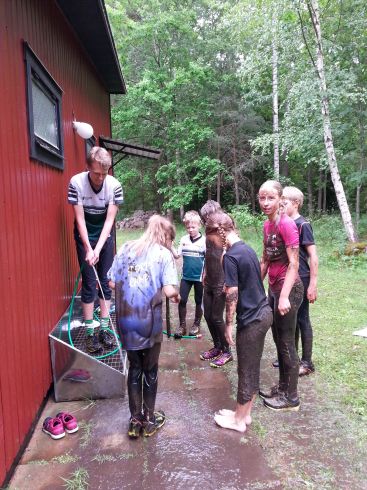 Torsdagen inleddes med frukost ute i tältet. Därefter lekte vi "fruktsallad" och "snappa kartan". Klockan 9.30 var det träning. Idag var det den traditionella kärr-orienteringen. De flesta kom tillbaka riktigt smutsiga. Efter träningen hade vi vattenkrig. Barnen använde sina vattenflaskor att spruta med, och när vattnet i dem tog slut, fick de gå till vattenpåfyllningshinkarna på gårdsplanen. Efter en lång och varm dusch med bastu efteråt gick barnen in i LOK-gården och åt lunch. Idag bjöds det på korv-stroganoff och ris. Under eftermiddagen körde barnen stafetter i grupperna de vandrat i. Några stafetter var: irländsk julafton, transportera kotte på sked och hoppa säck. Efter några stafetter gick vi in och lekte i en timme innan föräldrarna kom. Dagen avslutades med att föräldrarna kom och fikade med oss. Vi delade ut diplom och så fick föräldrarna och barnen göra en utvärdering. Nu kommer det inte komma några fler rapporter. Hoppas att det har varit intressant att läsa om veckan! Nu är SOL-skolan 2016 slut, men räkna med att den är tillbaka nästa år. /Klara Nedan följer lite bilder från dagen: ![]() Efterspel kärr-orienteringen ![]() Efterspel kärr-orienteringen ![]() Efterspel kärr-orienteringen ![]() Efterspel kärr-orienteringen ![]() Efterspel kärr-orienteringen ![]() Efterspel kärr-orienteringen ![]() Efterspel kärr-orienteringen ![]() Samling ute efter lunch Tillbaka
