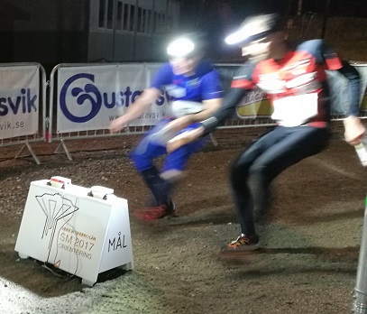 Idealtiderna var för optimistiska, där tex. H21 vinnaren Thierry Gueorgiou var 12 min över. Det var endast i H18 som man "bara" var 5 min över. I D21 klassen var segraren 11 min över idealtiden och hon vann dessutom med över 5 min. Bäst i bussen var en fd lokare, Rebecka (Österberg) som kom 6:a i D21. Placeringsmässigt av lokarna var Fredrika 13:e och Kajsa 19:e. Rasmus 24:a och Erik M 33:a. Tove 27:a och Olof 40:e. Emanuel blev sjuk och kunde inte vara med och Maximes lampa slocknade. Det började nästan bli ljust innan bussen stannade hos Åke kl. 4.30. 20/4 2018 går natt SM utanför Jönköping, då är vi minst en minibuss som åker igen. ![]() Thierry Gueorgiou (utom tävlan i SM) på väg mot seger.