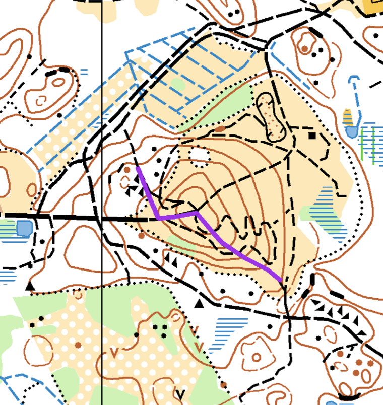 Från toppen av Vidingsjöbacken har Martins bana (reflex-spåret) dragits om lite.